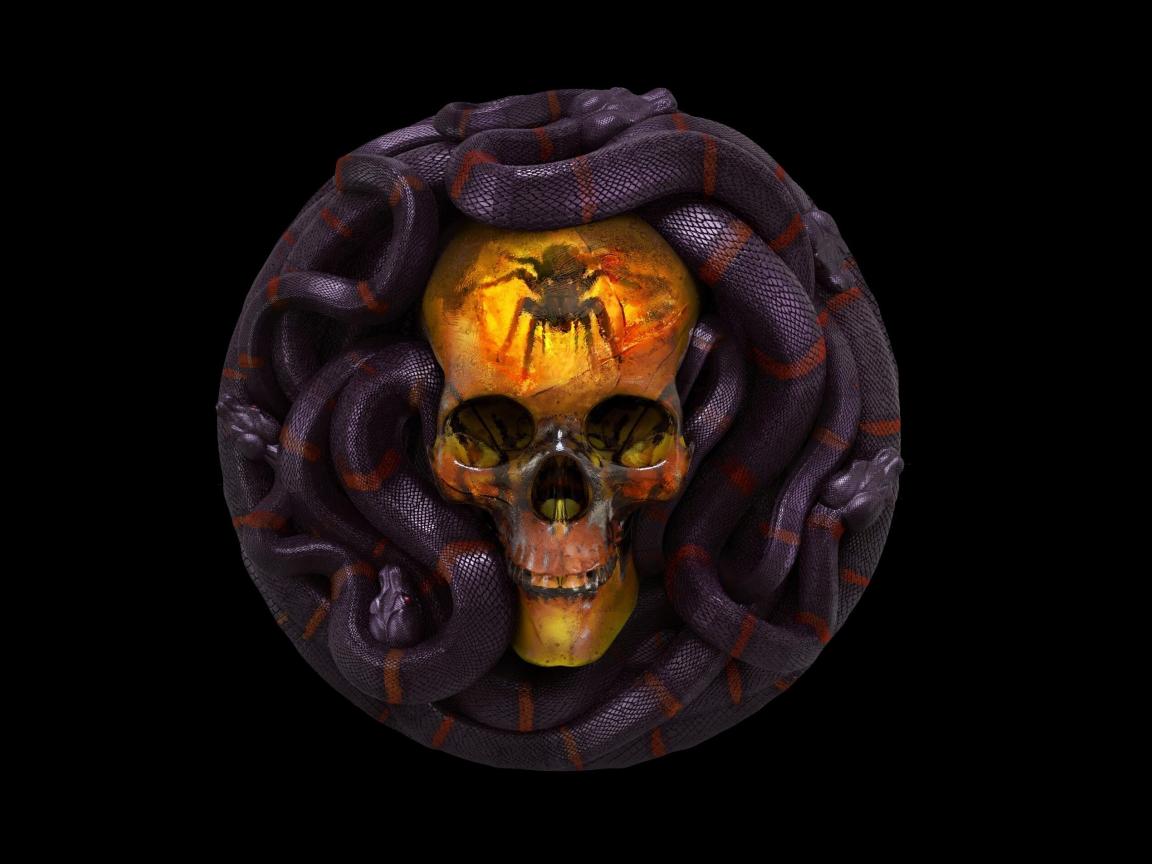 Wallpaper Skull with snakes on a black background