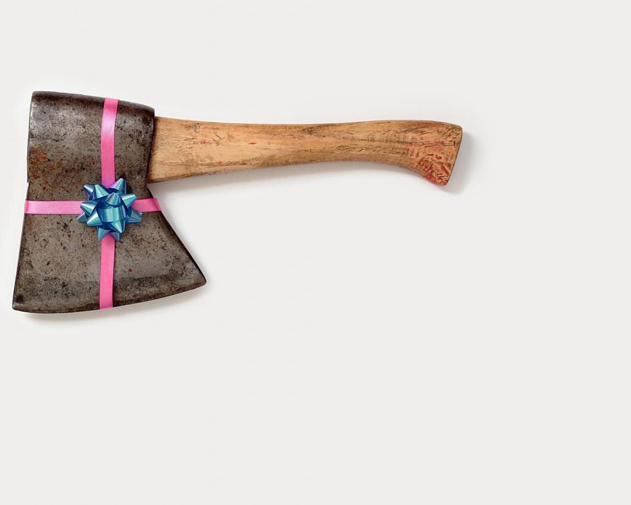 Wallpaper Ax with a bow on a gray background