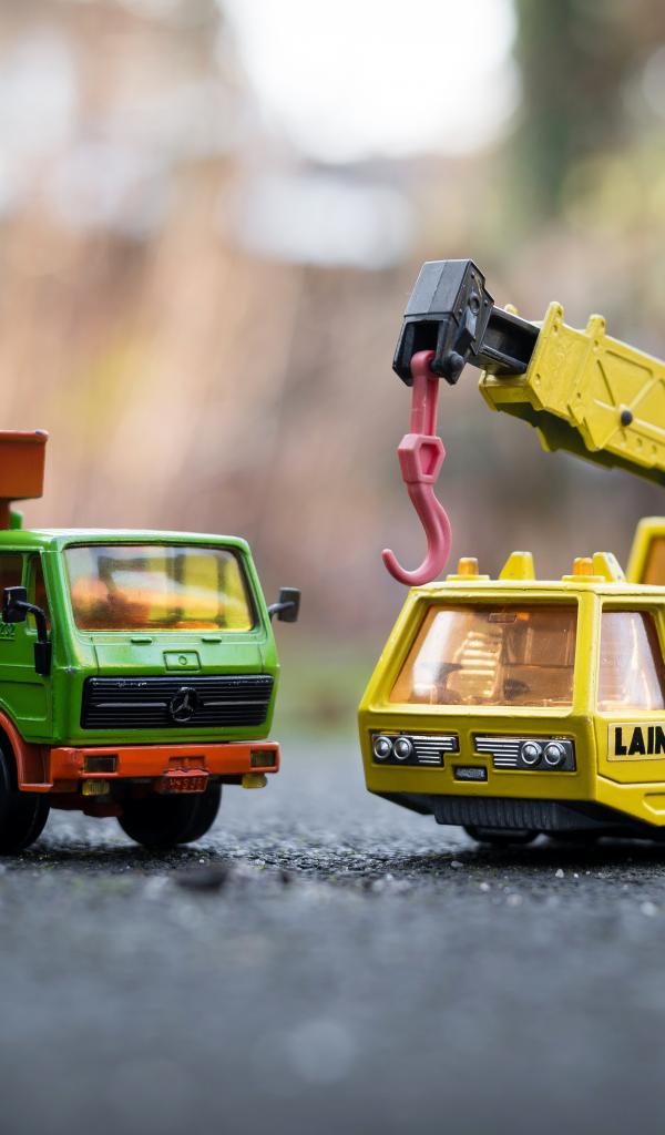 Wallpaper Two old cars truck and crane