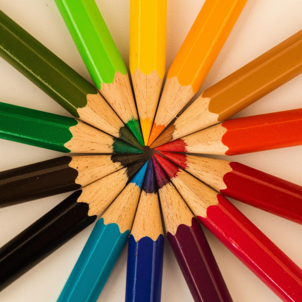 Wallpaper Multicolored sharpened pencils on a gray background