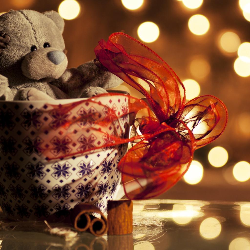 Wallpaper Soft toy bear in a cup with a red bow