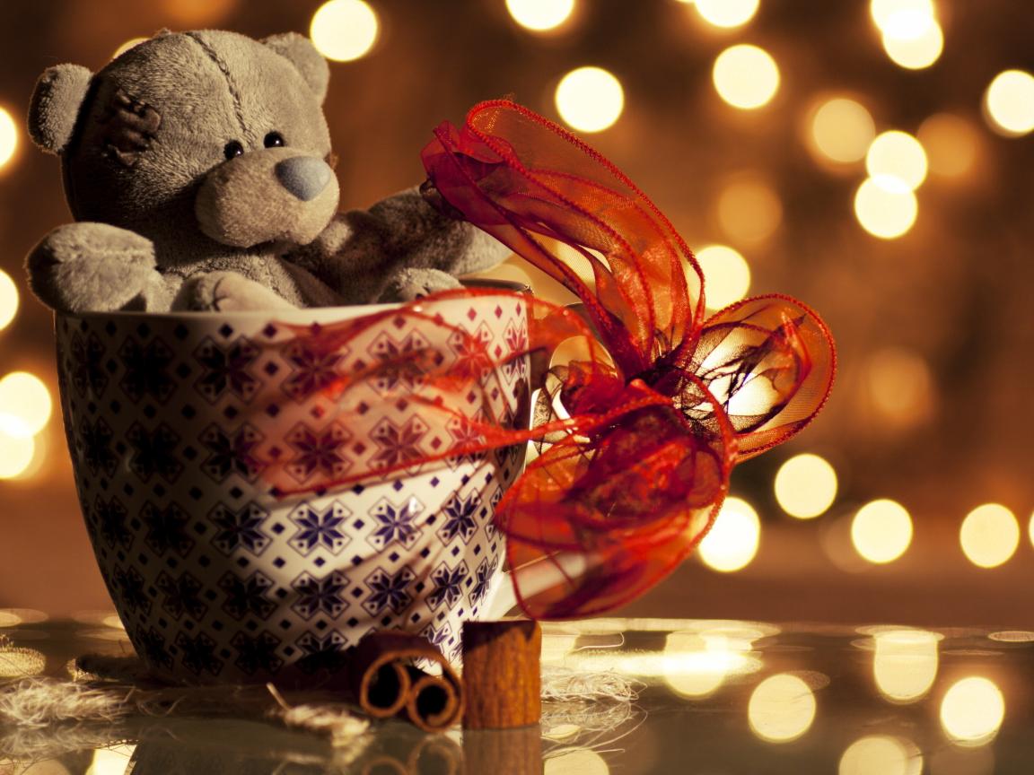 Wallpaper Soft toy bear in a cup with a red bow