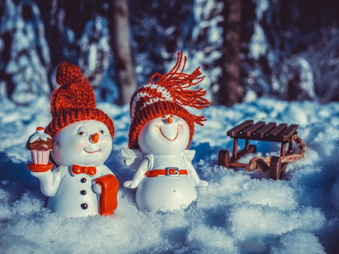 » Wallpaper Two snowmen figurines in the snow