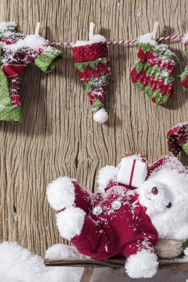 Wallpaper Two teddy bears in warm suits in winter