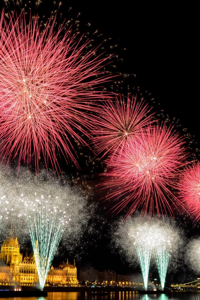 Wallpaper Explosions bright salute over the night city