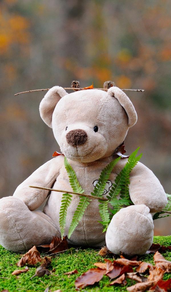 Wallpaper Teddy Bear sits in the woods on mossy ground