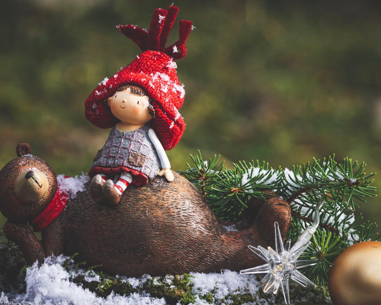 Wallpaper Figurine Masha and the bear with a fir branch