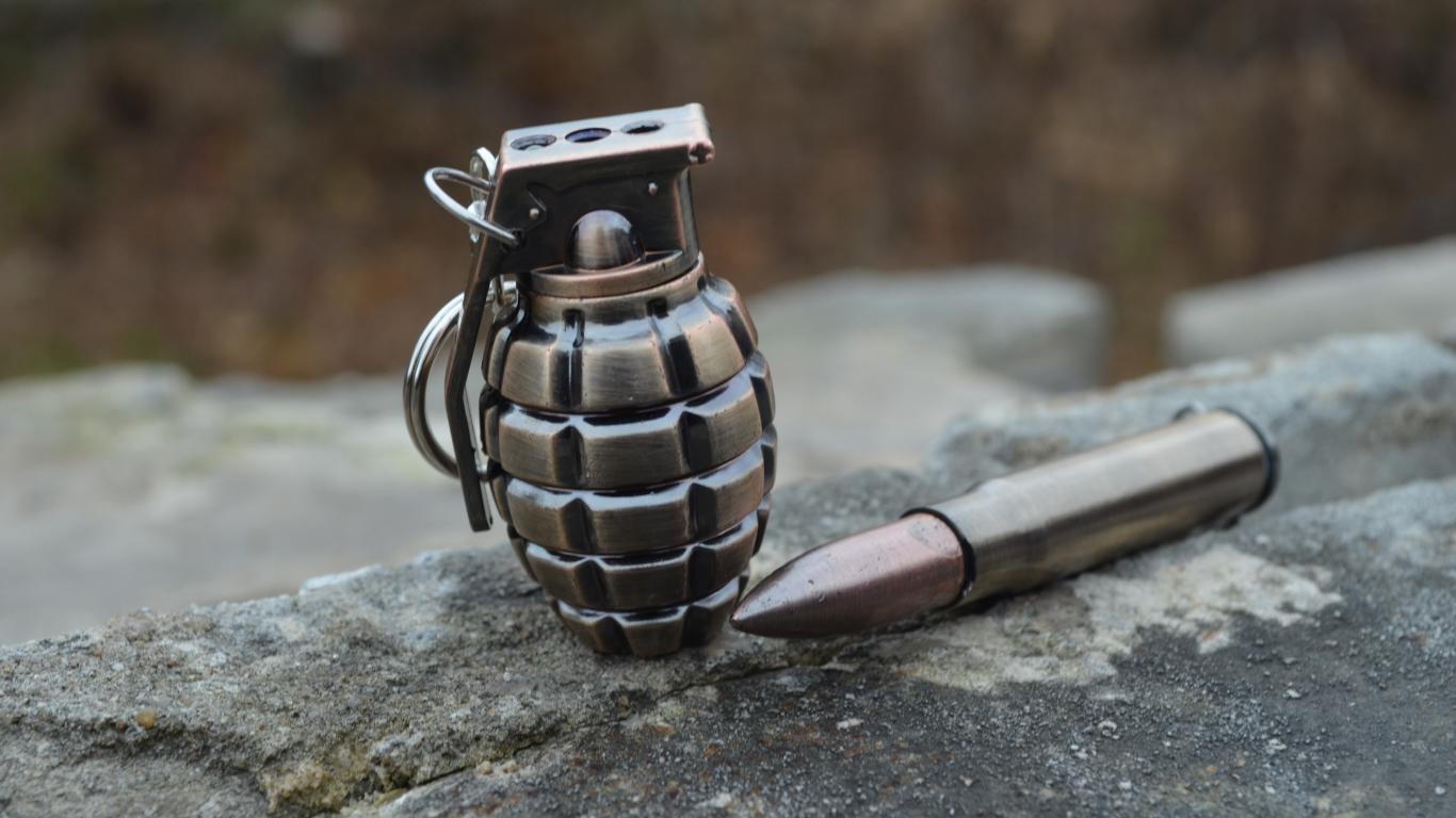 Wallpaper War grenade with cartridge lie on the stone