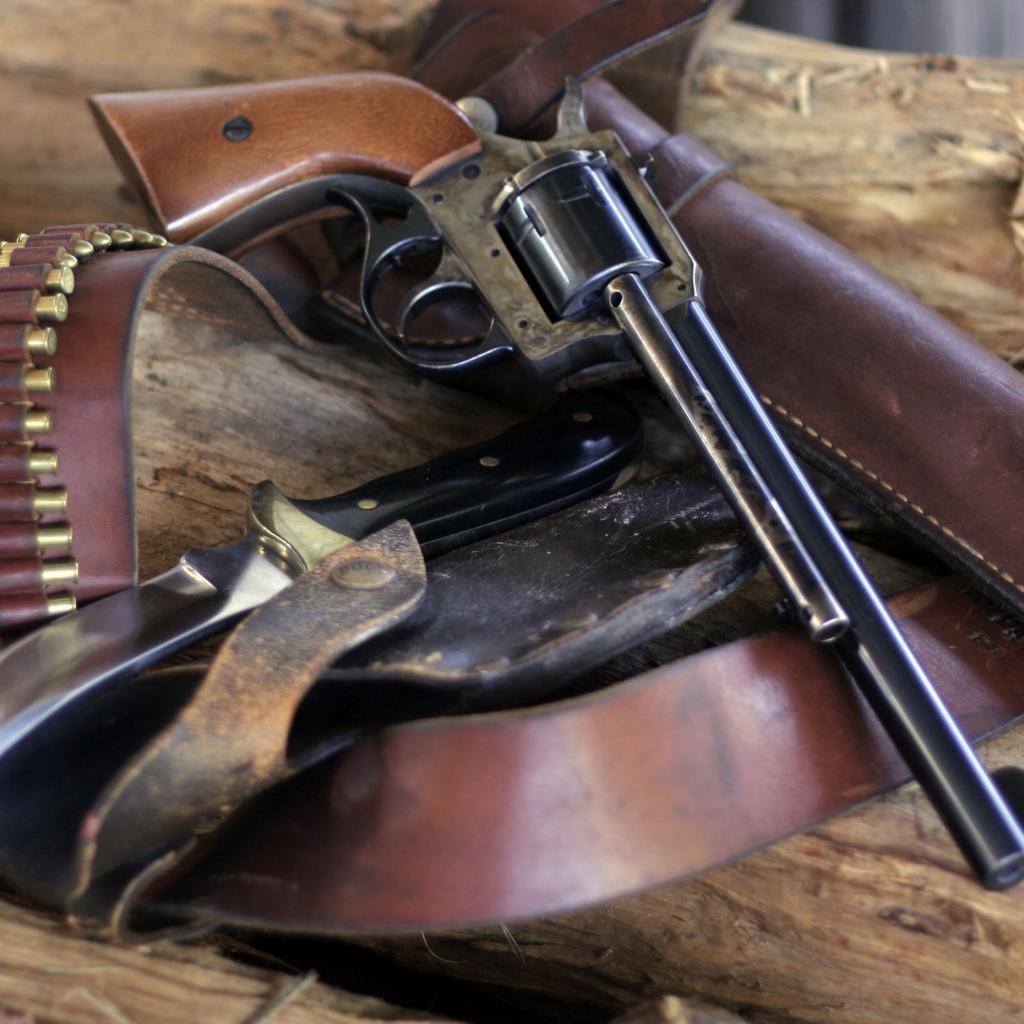 Wallpaper A revolver, a knife and bullets lie on the wood