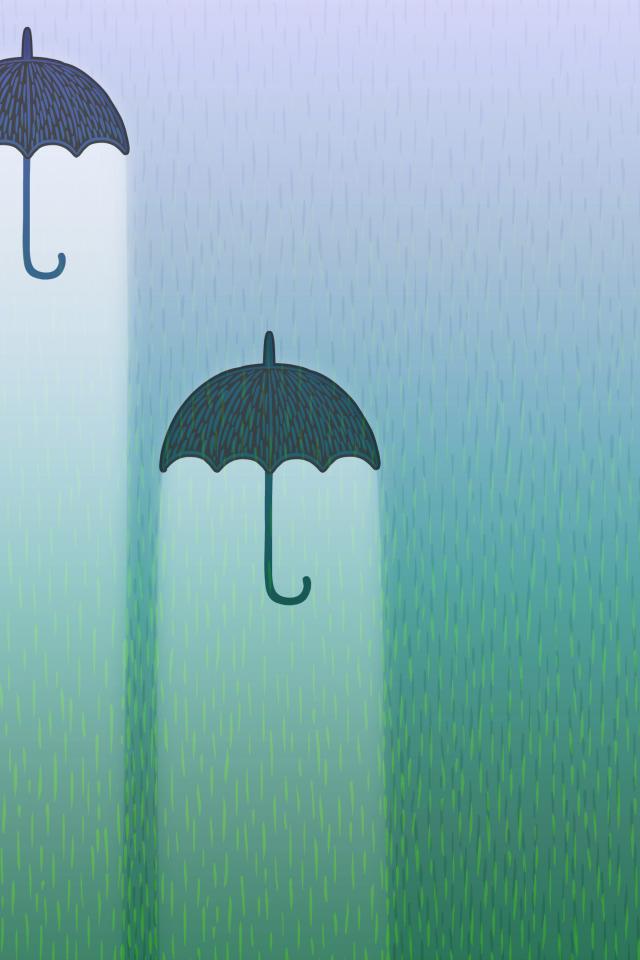 Wallpaper Three black umbrellas with rain light