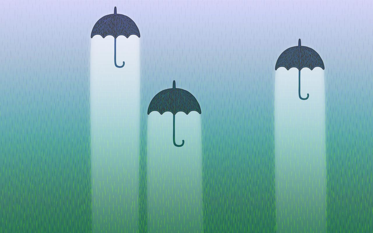 Wallpaper Three black umbrellas with rain light