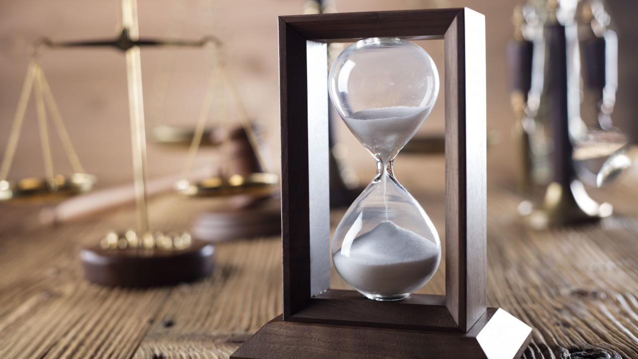Wallpaper Hourglass on the table with scales close-up