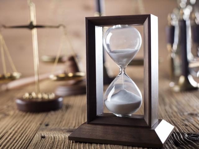 Wallpaper Hourglass on the table with scales close-up