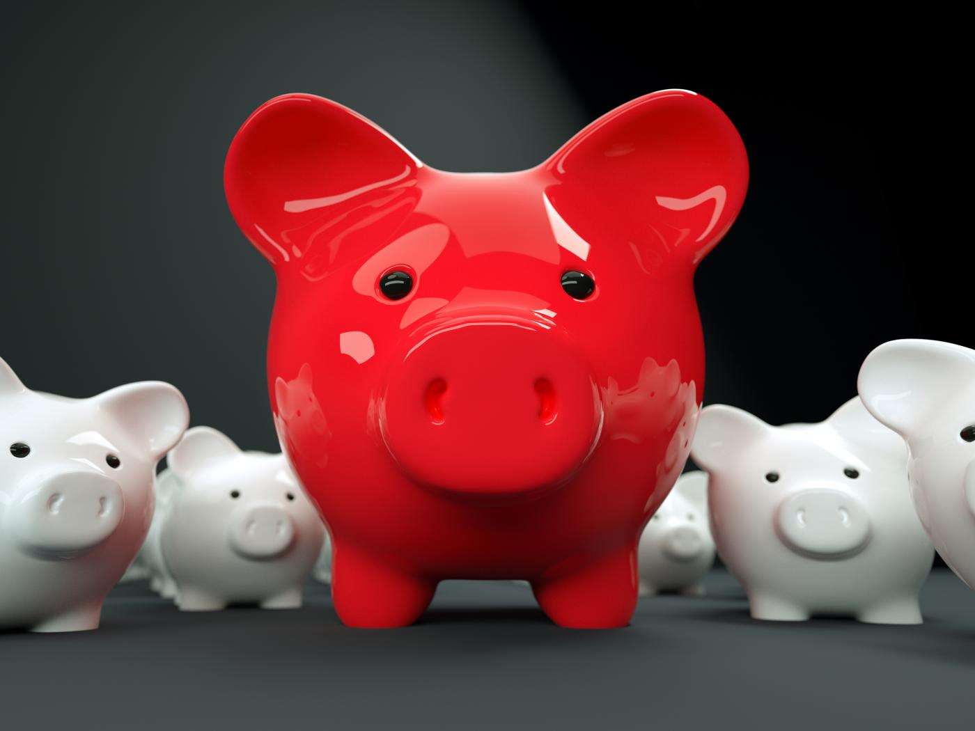 Wallpaper Big red pig moneybox on white background