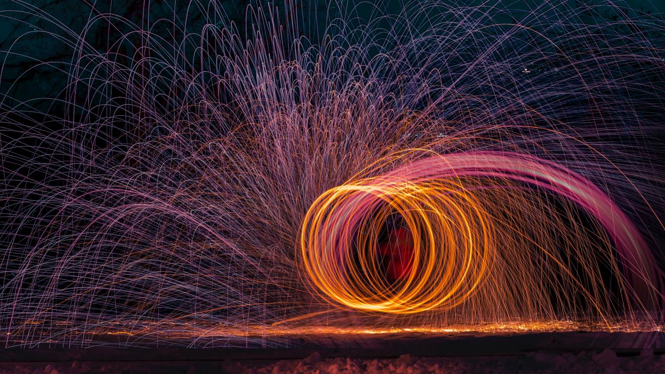 Wallpaper Multicolored sparks of bright fireworks in winter