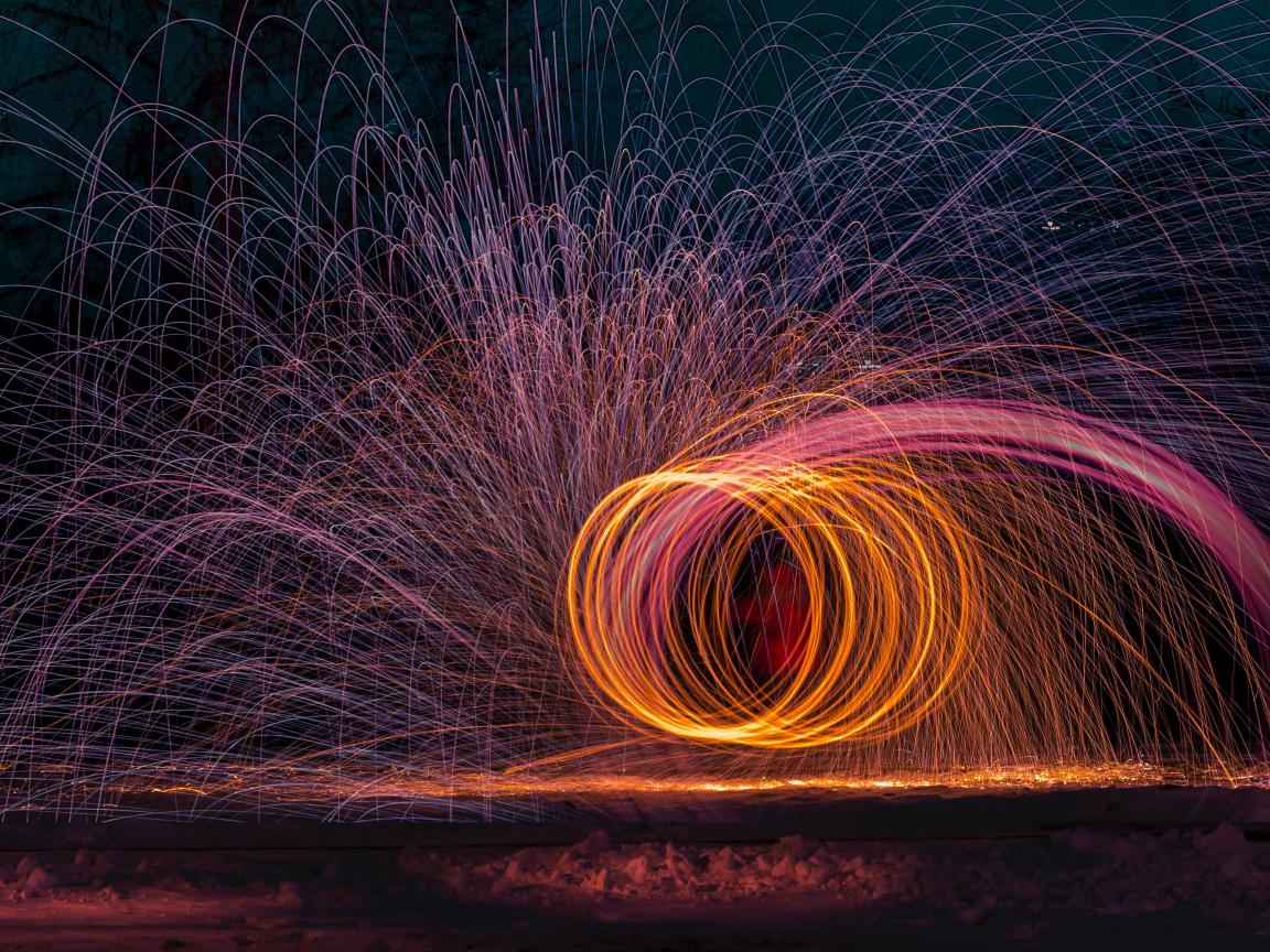 Wallpaper Multicolored sparks of bright fireworks in winter