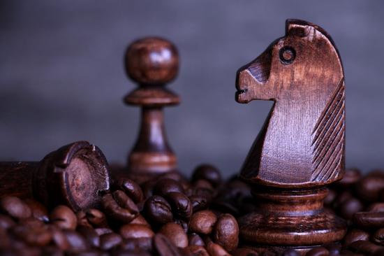 Wallpaper Wooden chess pieces stand on coffee beans