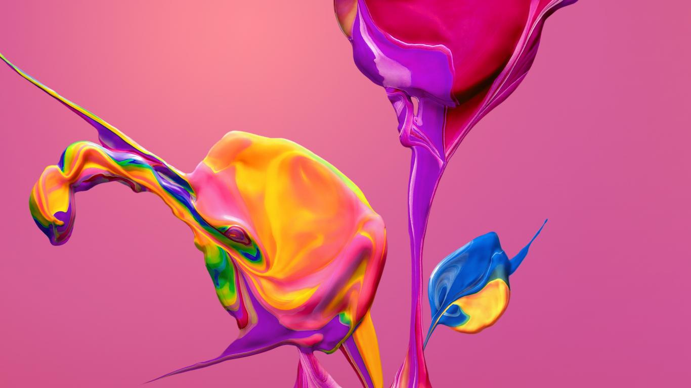 Wallpaper Multicolored paint mixed on a pink background