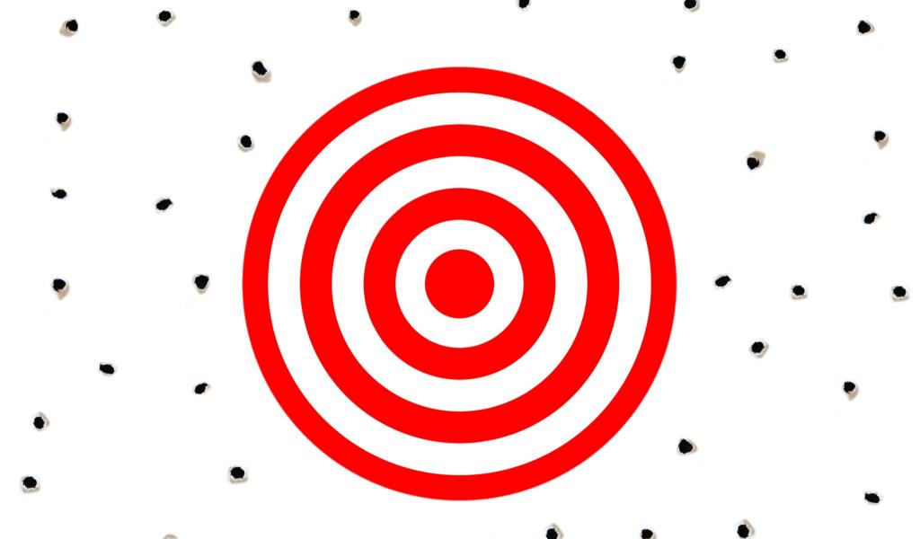 Wallpaper Red target on a white background with bullet holes