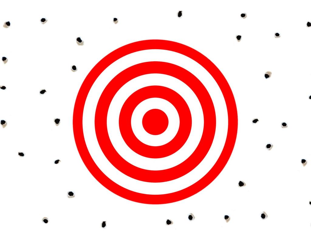 Wallpaper Red target on a white background with bullet holes