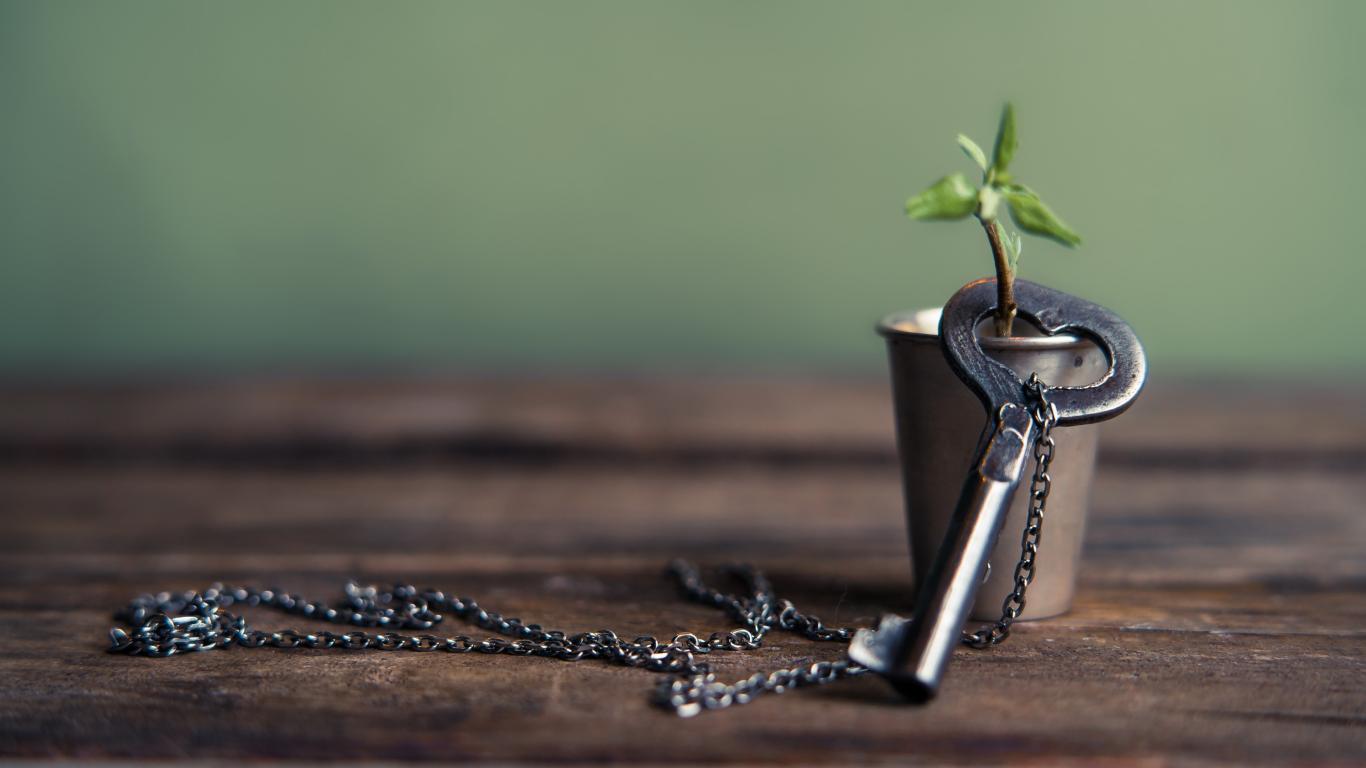Wallpaper The key on a chain is dressed on a twig in a glass