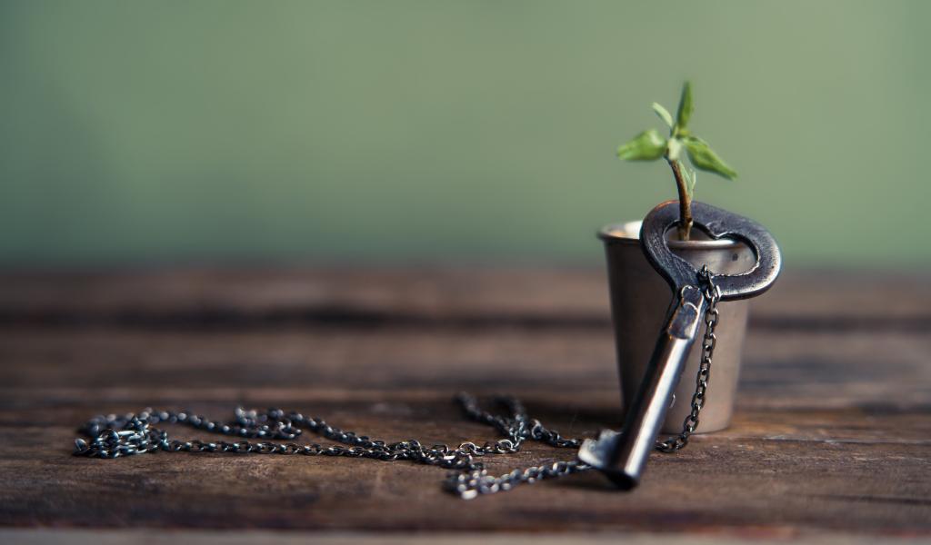 Wallpaper The key on a chain is dressed on a twig in a glass