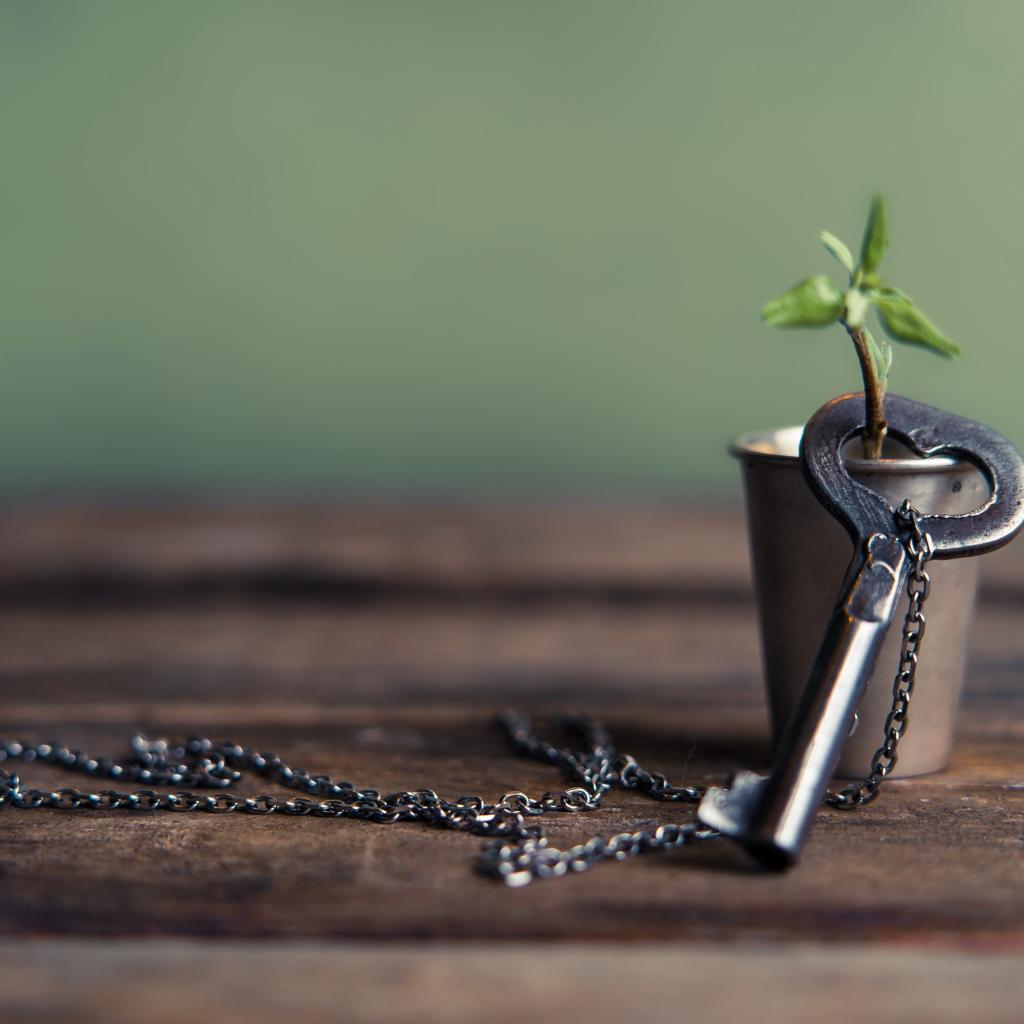 Wallpaper The key on a chain is dressed on a twig in a glass