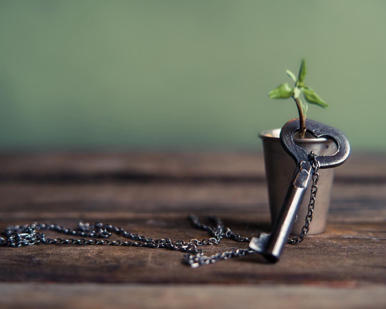 Wallpaper The key on a chain is dressed on a twig in a glass