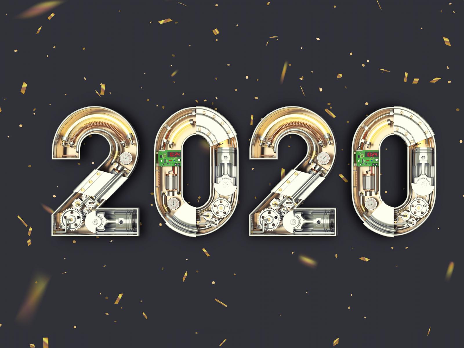 Wallpaper Big mechanical numbers 2020 on a gray background