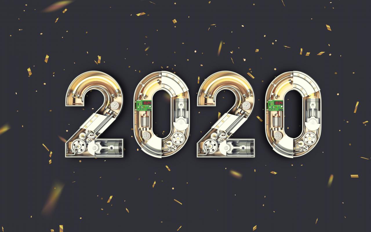 Wallpaper Big mechanical numbers 2020 on a gray background