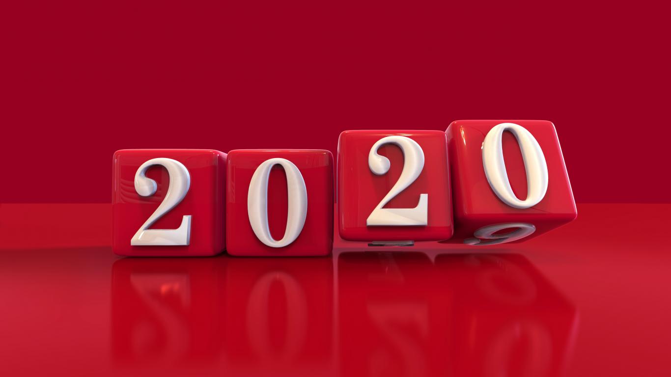 Wallpaper Cubes with white numbers 2020 on a red background