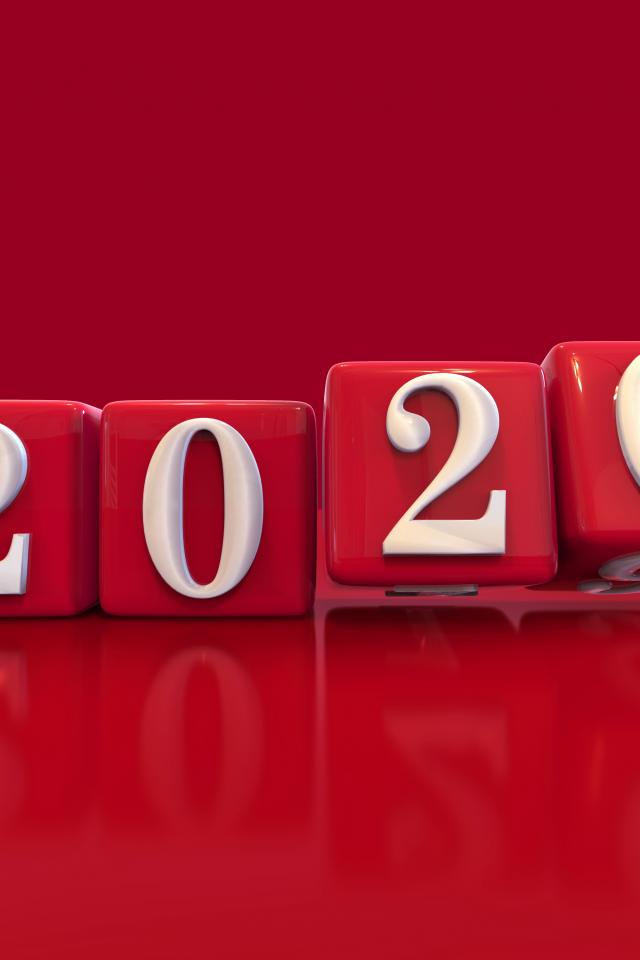 Wallpaper Cubes with white numbers 2020 on a red background