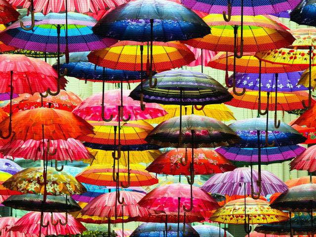 Wallpaper A lot of multi-colored umbrella in the air