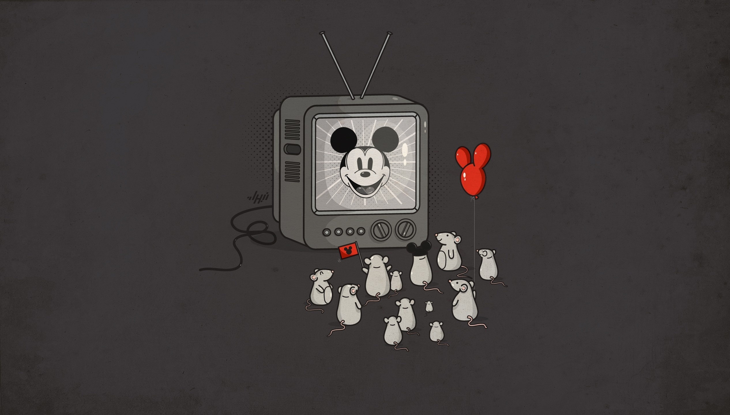 Wallpaper Mice watch on TV a cartoon about Mickey Mouse