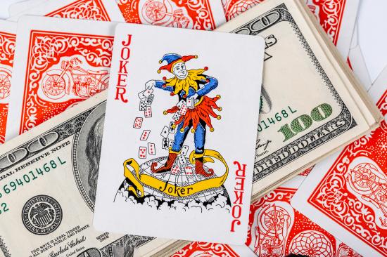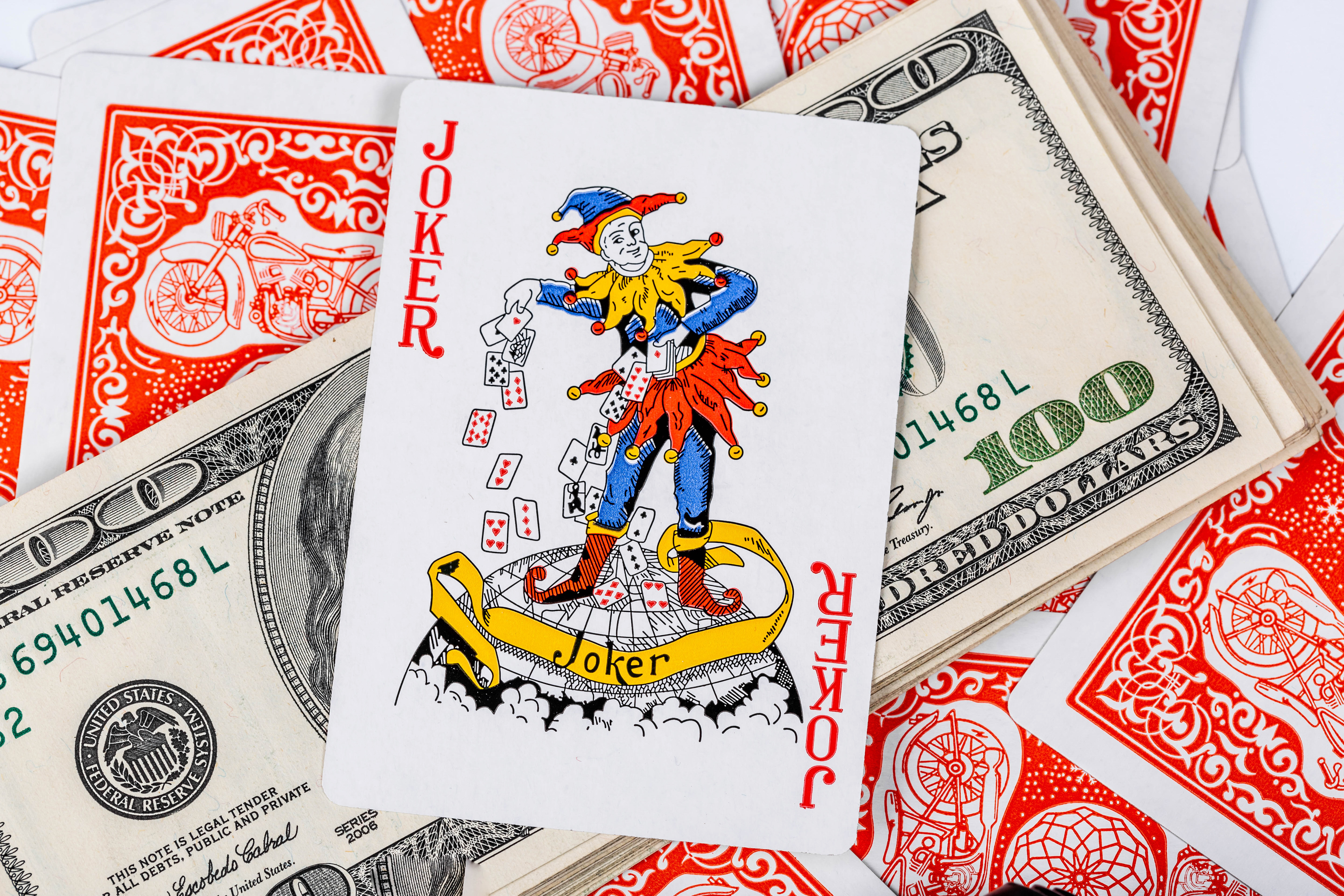 Wallpaper Card Joker and a pack of hundred-dollar bills