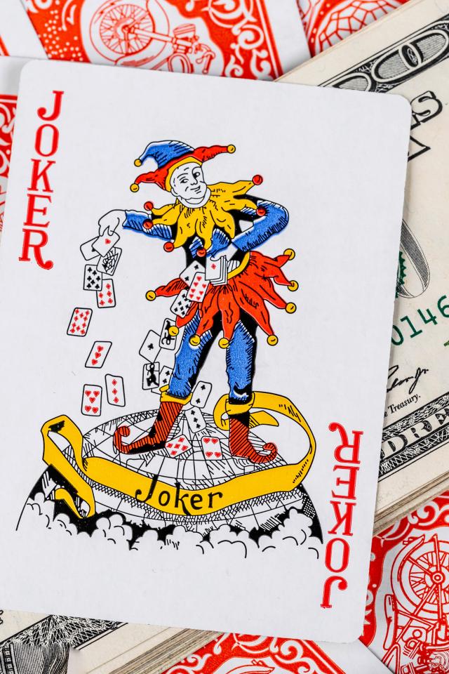 Wallpaper Card Joker and a pack of hundred-dollar bills