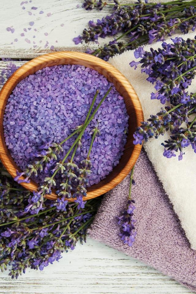 Wallpaper Fragrant salt, on a table with towels, lavender and candles