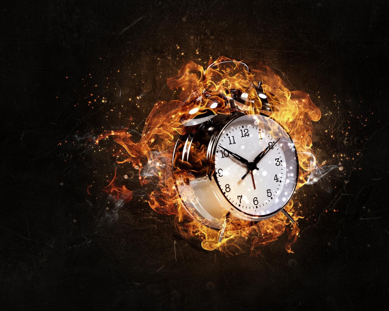 Wallpaper Appetizing breakfast in bed with alarm clock