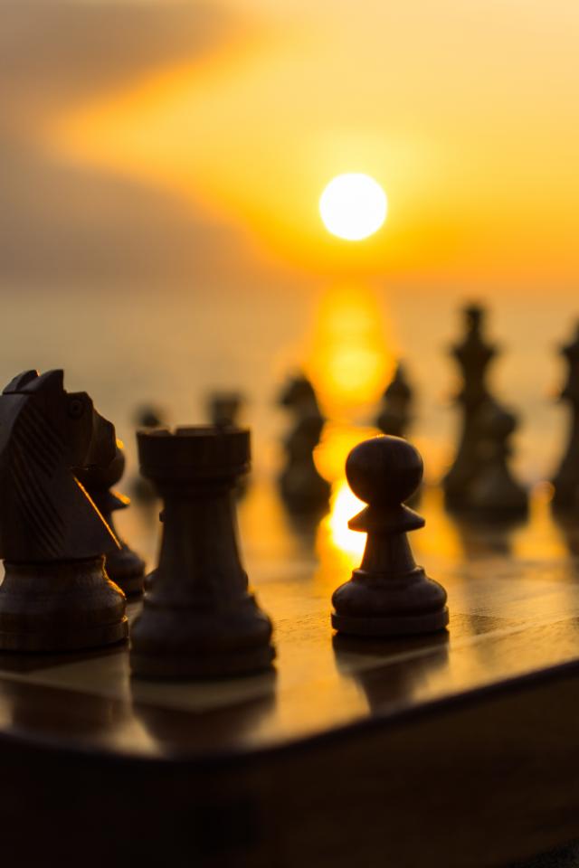 Wallpaper Wooden chess on a chessboard on a sunset background