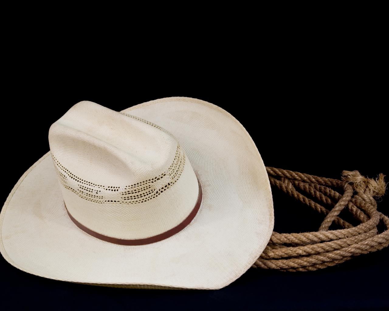 Wallpaper White cowboy hat with a lasso on a black background