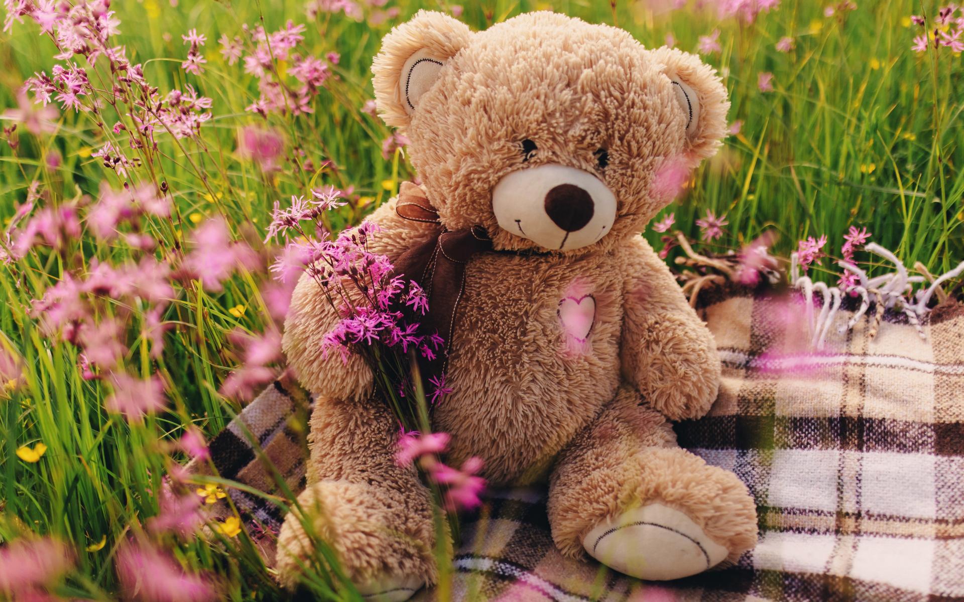 Wallpaper Teddy bear cub sitting in green grass