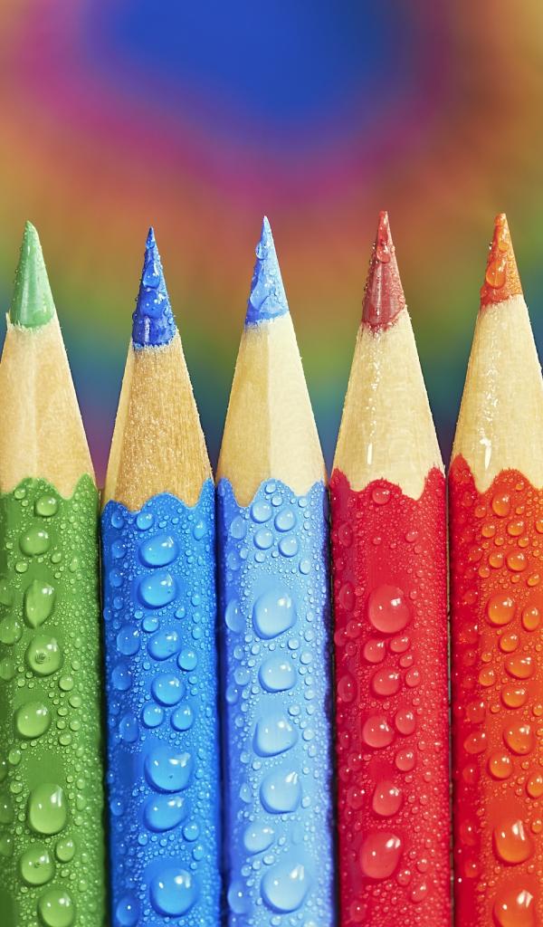 Wallpaper Sharpened multicolored pencils in drops of water
