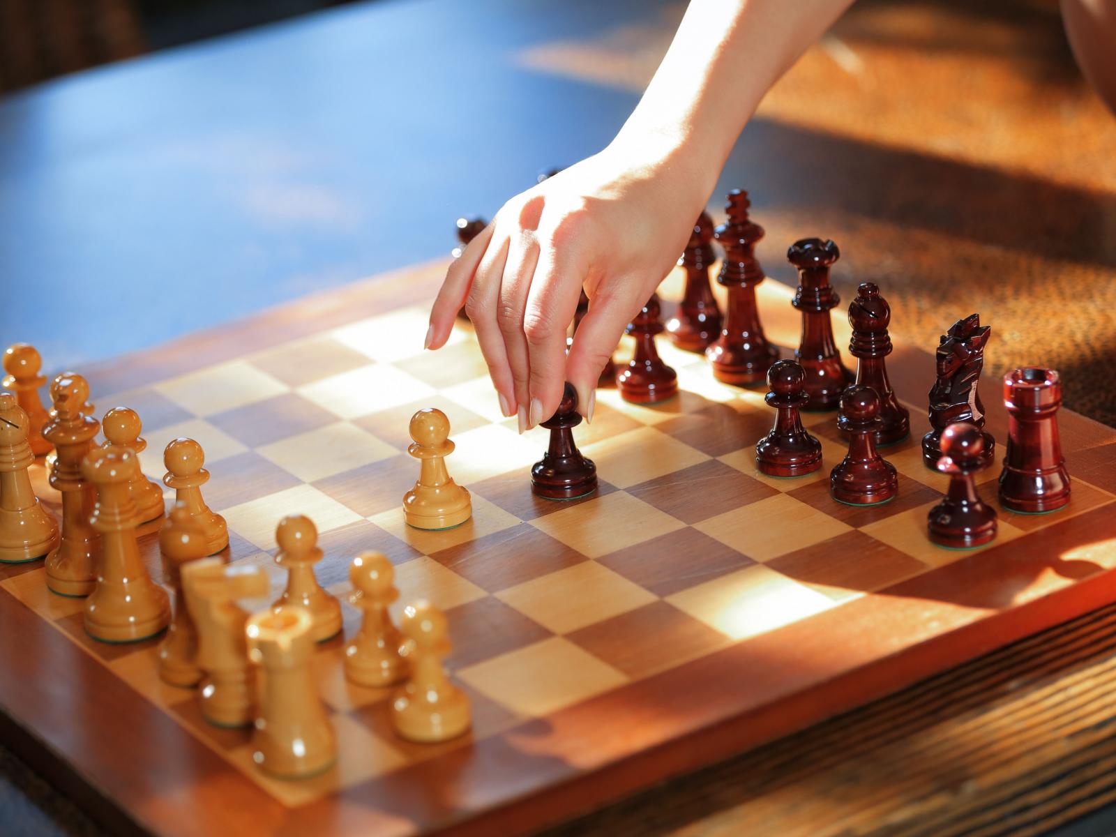 Wallpaper Chess board with wooden chess