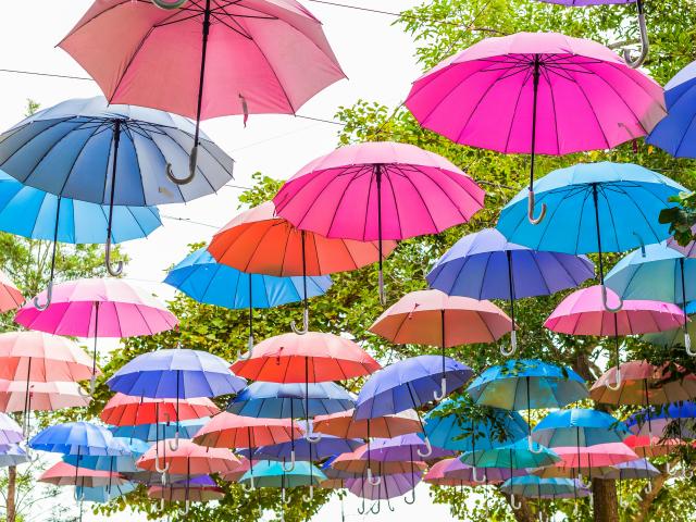 Wallpaper Many colorful umbrellas in the park