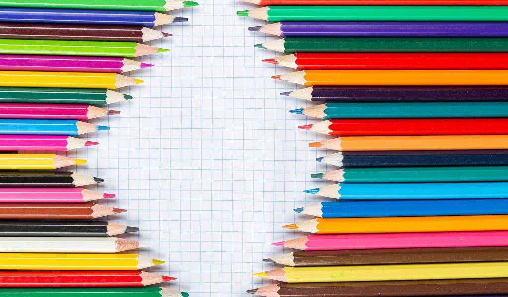 Wallpaper Sharpened multicolored pencils on a sheet of notebook