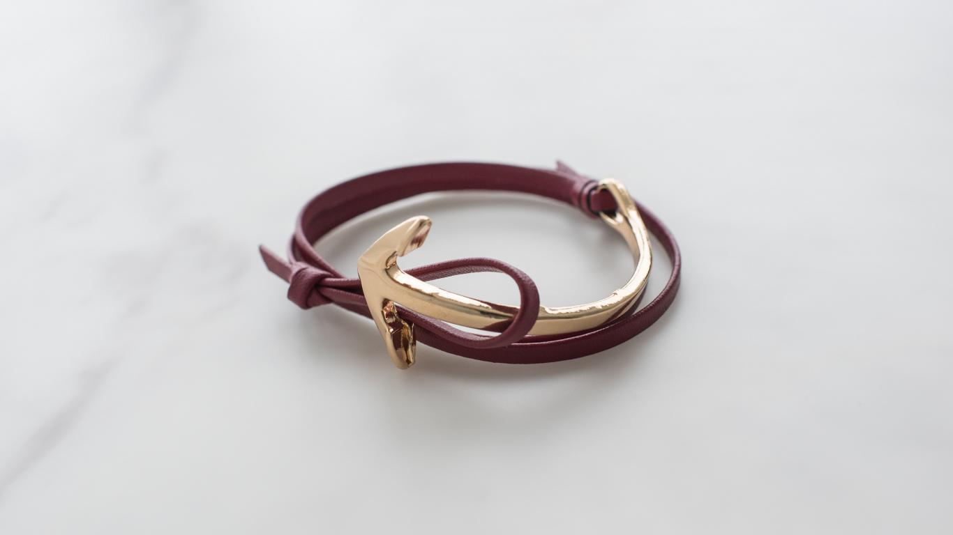Wallpaper Leather bracelet on hand on a gray background