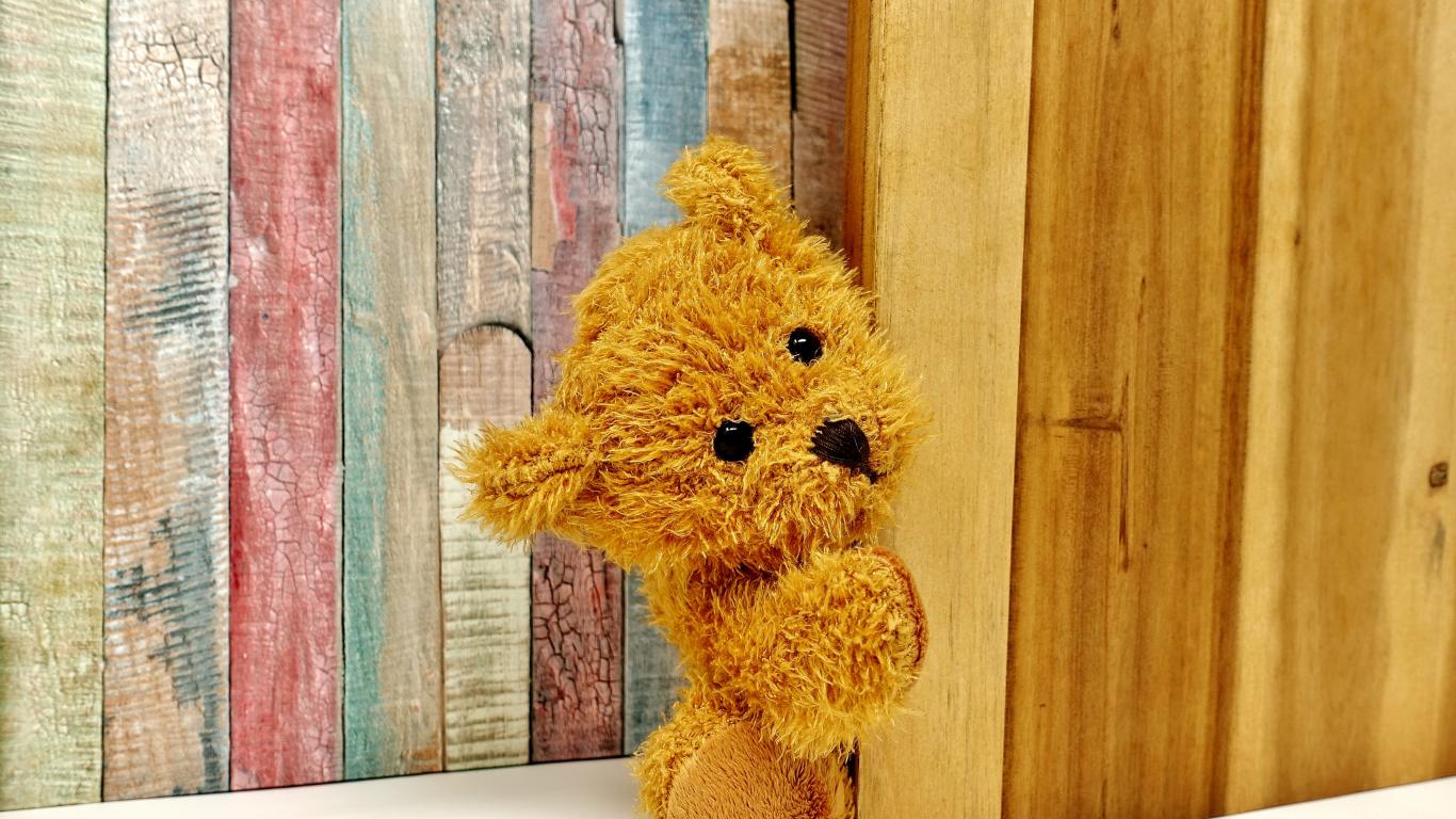 » Wallpaper Teddy bear peeks out of the door