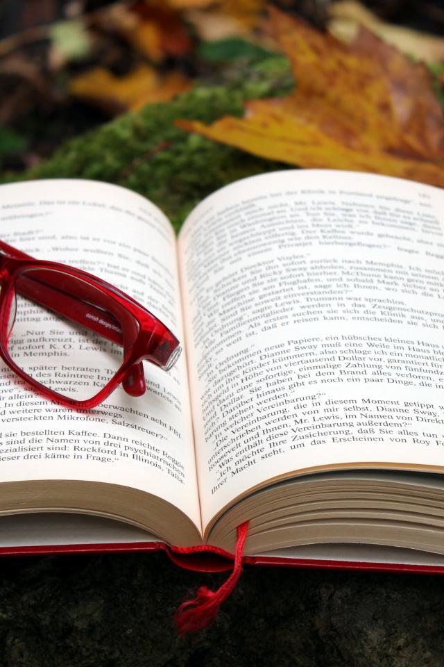 Wallpaper A book with red glasses lies on the ground