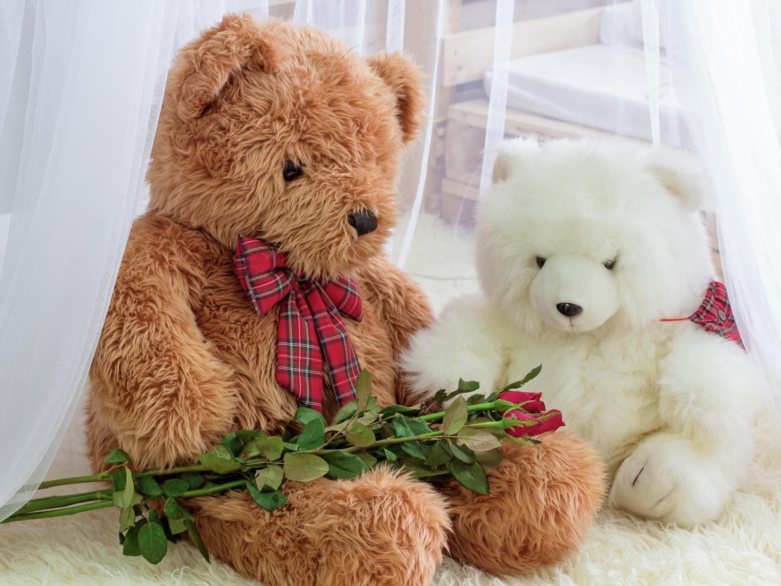» Wallpaper Two toy bears with roses