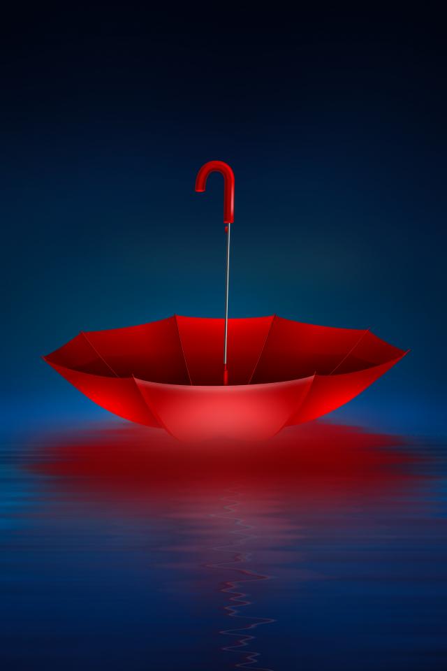 » Wallpaper Red inverted umbrella in water